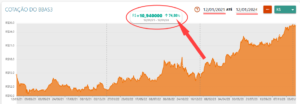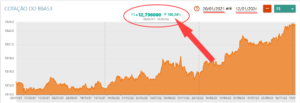 Para entender melhor vamos analisar o gráfico da cotação das ações do Banco do Brasil (BBAS3) em duas situações de compra, uma no dia 12 de janeiro de 2021 até o dia 12 de janeiro de 2024, e outra se o investidor tivesse esperado mais 8 dias (20/01/2024) para fazer a compra com uma cotação melhor.