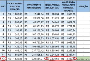 Dessa forma, o objetivo será atingido no ano 12, conforme a imagem da nossa planilha abaixo.
